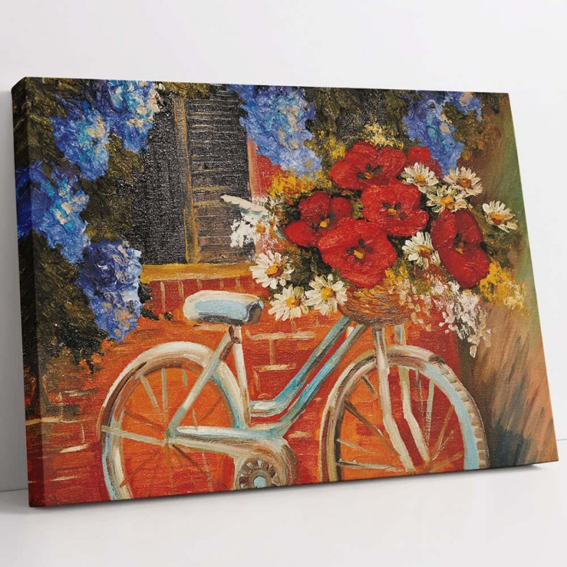 Ο Πίνακας Καμβάς 651MRT1387 αποπνέει μία ρομαντική και ρετρό αίσθηση με το υπέροχο σχέδιο ενός ποδηλάτου που περιβάλλεται από ολάνθιστα λουλούδια. Το σχέδιο συνδυάζει την αθωότητα και τη γοητεία του παρελθόντος με τη φυσική ομορφιά, δημιουργώντας μια εικόνα γεμάτη ζωή και χρώμα. Τα λουλούδια που πλαισιώνουν το ποδήλατο προσθέτουν μία αίσθηση ανοιξιάτικης φρεσκάδας και χαράς, κάνοντάς τον ιδανικό για κάθε χώρο που θέλει να αναδείξει την ομορφιά της φύσης και την απλότητα της καθημερινότητας. Κατασκευασμένος από υψηλής ποιότητας καμβά, αυτός ο πίνακας αναδεικνύει με τον πιο όμορφο τρόπο τις προσεγμένες λεπτομέρειες και τα χρώματα.