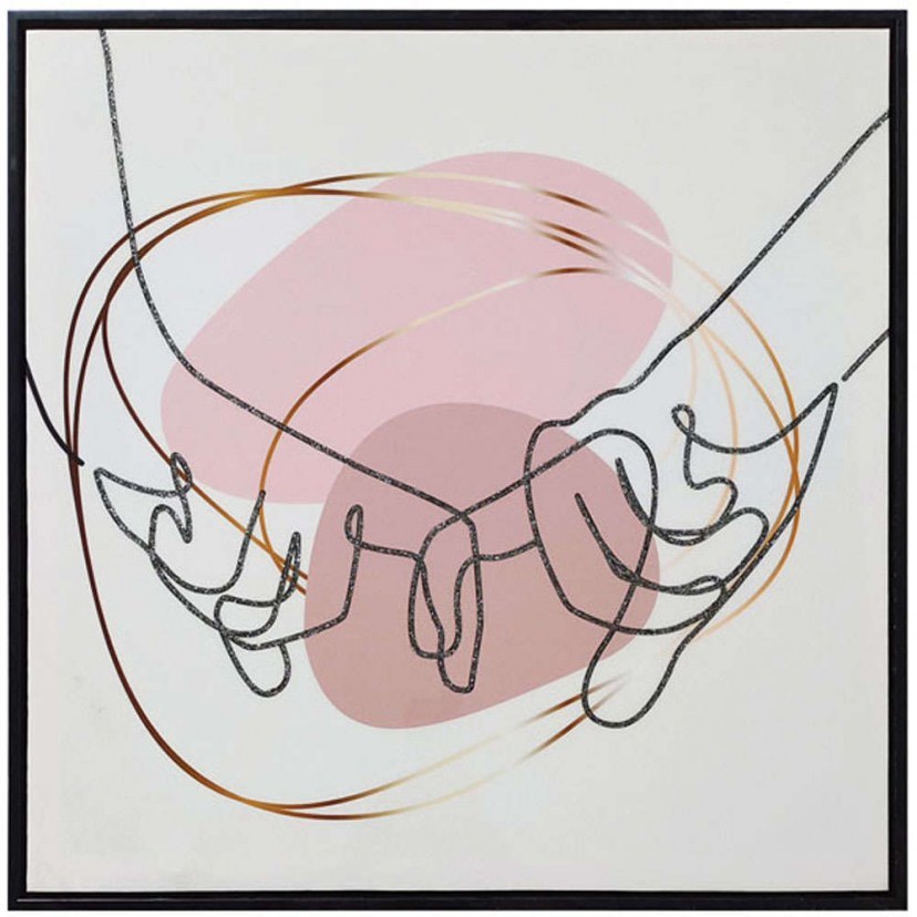 Finger Canvas Painting 15-00-23574 combines modern and romantic, which will make you love it. This is a canvas painting with a PS frame and striking metal leaves. It can be placed in various rooms, such as the living room or the bedroom. Quality: