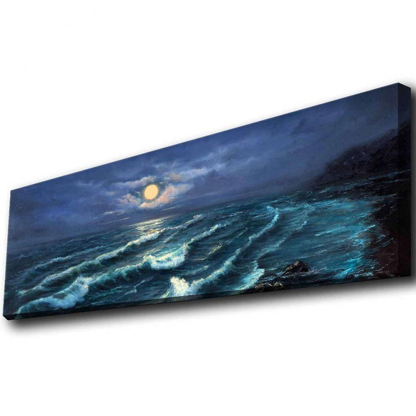 The LED Lighted Canvas Painting 139LDG1106 depicts a seascape with small waves under the moonlight. The work exudes a sense of peace and tranquility as the moonlight gently illuminates the surface of the sea, creating an enchanting and romantic setting. Crafted from suede canvas, the artwork exudes sophistication and timeless beauty, while the wooden frame ensures sturdiness and durability. At 3cm thick, the frame adds depth and dimension, making the painting stand out on your wall. The built-in LED function offers a unique illumination, enhancing the details of the work and creating an atmosphere of warmth and elegance. You can adjust the lights easily via the on/off button. Requires 9 volt battery power, not included.