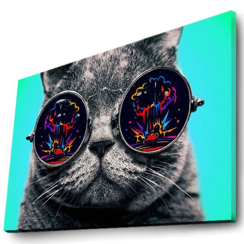 The Led Light Canvas Painting 254LED3285 will bring color and modern style to your space, as it depicts a cute kitten with sunglasses that is beautifully highlighted by hidden lighting. The canvas painting is made with attention to detail, using polyester canvas and a high quality 3cm thick wooden frame. The ease of use of the panel lighting, with its convenient on/off button, make it an ideal choice to light up your space without the fear of unsightly cables, as all it requires is one battery, which is not included in the package. Quality: