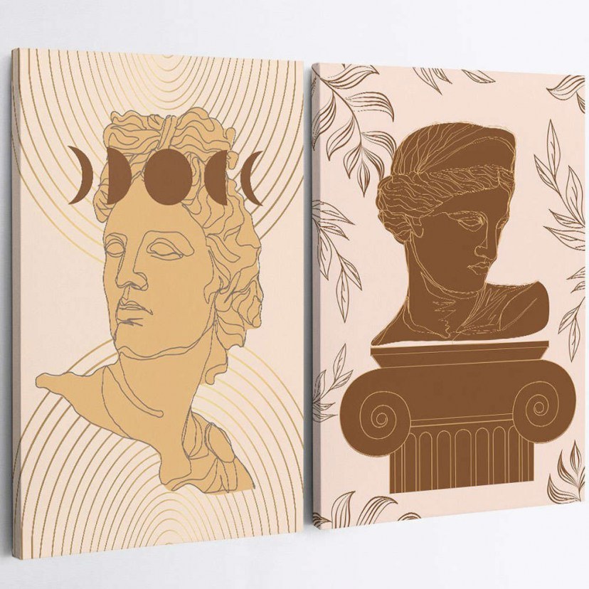 The 910NVT1154 Painting Set consists of two impressive paintings with two statues, captured in a modern and creative way. Statues, traditional symbols of art, take on a new, modern form, offering an interesting contrast between the classic and the modern. Each painting is created with meticulous attention to detail, using canvas, which ensures vibrant colors and long-lasting durability. The high-quality wooden frame offers additional elegance and stability, highlighting the artistic value of the work and offering a sense of luxury to your space.