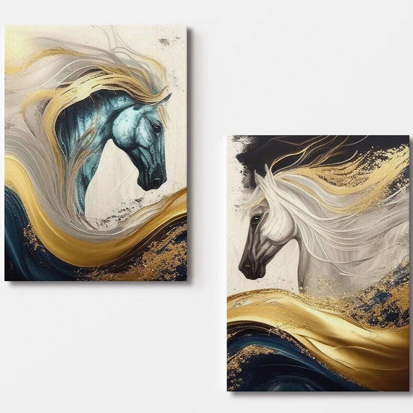 The Canvas Painting Set 910NVT1344 includes two impressive paintings that depict two imposing horses in a dynamic and abstract manner. The lively movement and explosive color combinations create a sense of freedom and tension, offering your space a unique artistic touch. Crafted from high-quality canvas, the paintings ensure that colors remain vibrant and clear, offering timeless and durable art for your space. The wooden frame offers extra strength and elegance, ensuring that the paintings will remain intact and beautiful for many years.