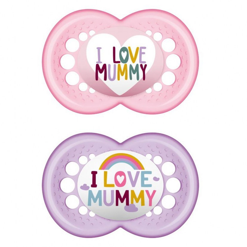 The Original I Love Mummy Orthodontic Pacifier Set is an ideal product for your baby! These are two pacifiers that with their design, enjoyment is guaranteed for your baby and joy is guaranteed for mom, thanks to the loving design. Pacifiers feature a SkinSoft™ silicone nipple, which provides an incredibly soft sense of intimacy, to keep your baby comfortable and satisfied. In addition, the set includes a practical transport and sterilization box, so you can store them and keep them clean and safe. They are made from materials that do not contain bisphenol A and S (BPA & BPS), ensuring a safe product for your baby. They have a curved shield for ultimate comfort and a skin-friendly inner surface with a textured texture. In addition, the button handle offers easy holding and simple support for your baby. The design of the pacifiers is specially designed for the proper development of your baby's teeth, with a symmetrical shape that perfectly fits his little mouth. Don't worry about the quality, as the pacifiers have been designed in collaboration with pediatric dentists to provide the best care for your baby's teeth. Give your baby the love and care he deserves with the Original I Love Daddy Orthodontic Pacifier Set! Enjoy the safety, comfort and quality of MAM, a trusted and innovative manufacturer of products for babies and toddlers! Suitable For: 16+ Months