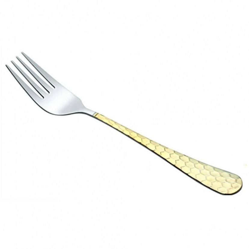 The A-181 01881 Dinner Fork features a stylish design that will make you love it. The rich color and beautiful patterns on the handle will impress your guests. It is made of durable stainless steel. Quality: Stainless Steel 18/0 Dimensions: 1 Fork: Length: 20 cm, Width: 0.2 cm