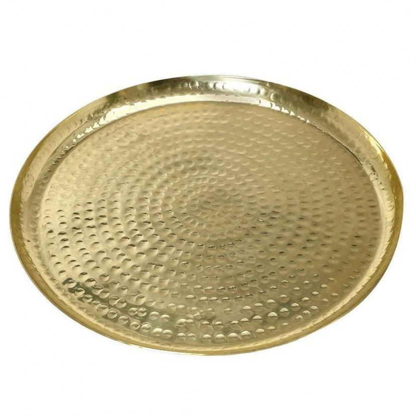 The Pandora LAK313K4 Serving Plate will be a unique decorative element and an impressive solution for presenting and serving food on tables and buffets. It is a round plate, made of aluminum with a gold finish and an embossed design that resembles hand-forged. It is suitable for the dishwasher and thanks to its quality and stackable design, it is ideal for professional use. Quality: