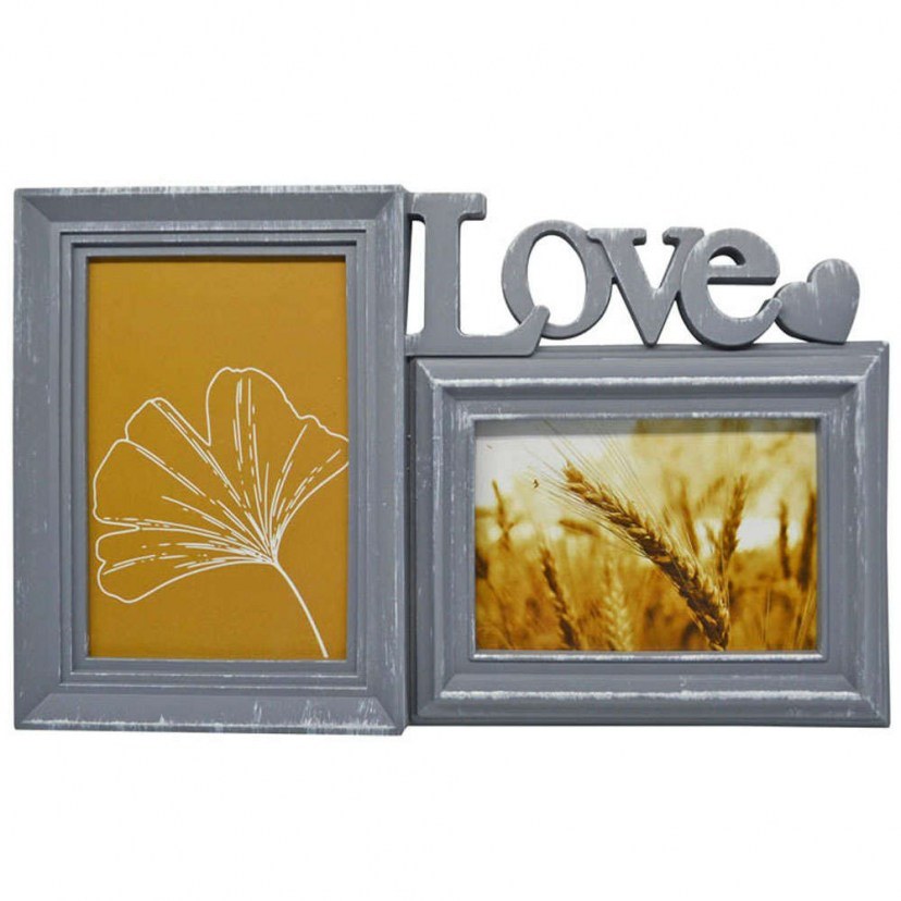 The Love 821297 2-Seat Multiframe can be used in any space and can make its decoration more romantic. It is made of plastic and has an antique design. It consists of two frames, a heart, and the inscription 'Love'. Offered at a shocking price! Quality: Plastic Dimensions: 1 Multiframe: Length: 37 cm, Width: 3 cm, Height: 22 cm