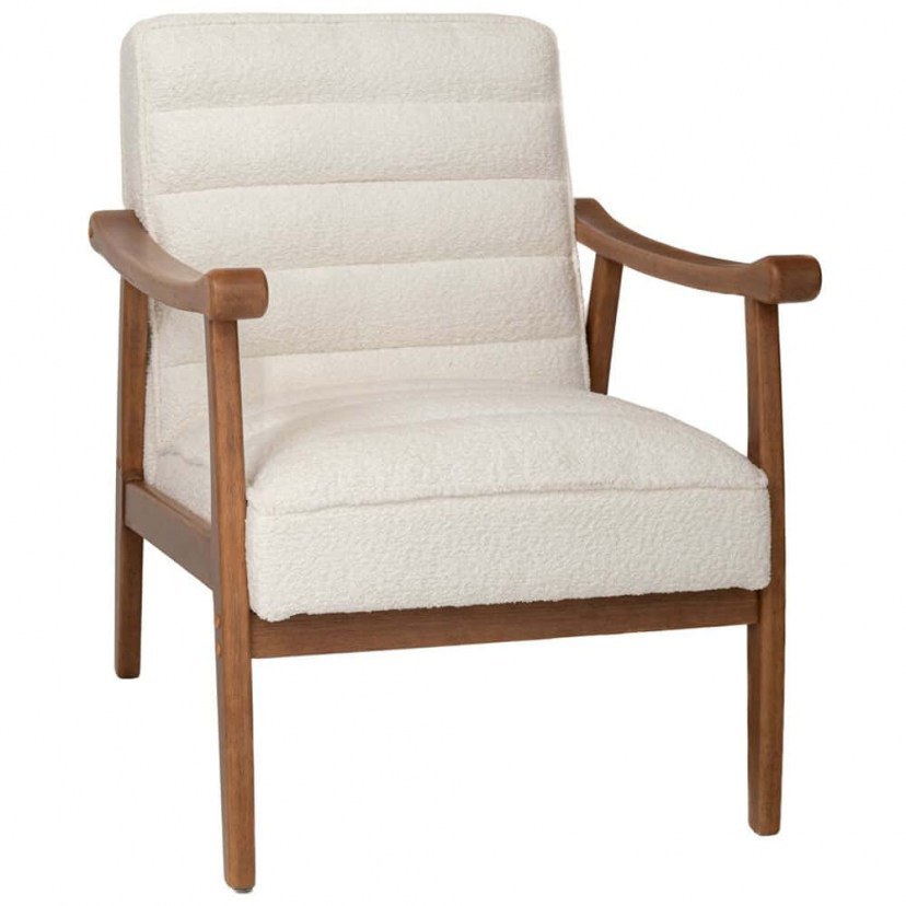 Η Μπουκλέ Πολυθρόνα 92070 αναβαθμίζει την εμπειρία της χαλάρωσης μέσα από έναν εξαιρετικό συνδυασμό φυσικών υλικών, διαθέτοντας έναν στιβαρό σκελετό από ξύλο καουτσούκ που εγγυάται μακροχρόνια αντοχή και σταθερότητα. Η επένδυση από ύφασμα μπουκλέ προσφέρει μια μοναδική αίσθηση απαλότητας και θαλπωρής, ενώ η ανάγλυφη υφή του προσδίδει βάθος και μια σύγχρονη νότα πολυτέλειας στον σχεδιασμό. Με τις άνετες γραμμές της και τον γήινο χαρακτήρα του ξύλου, εντάσσεται αρμονικά σε κάθε μοντέρνο καθιστικό ή γωνιά ανάγνωσης, λειτουργώντας ως ένα κομψό στοιχείο διακόσμησης που ισορροπεί απόλυτα ανάμεσα στην οργανική αισθητική και την απόλυτη λειτουργικότητα.