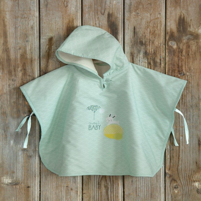 The Sunny Bunny Baby Poncho is ideal for your son but also as a gift for a boy in your family or friends circle. It is made of high-quality cotton threads, which make it completely friendly to the sensitive baby skin and very absorbent. It is a double-sided poncho with a fluffy terry texture on the inside and soft fabric with a printed design on the outside.