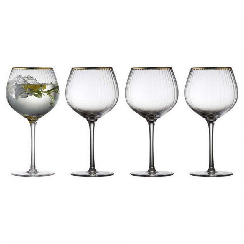 The Palermo Wine Glass Set 12061 includes 4 elegant wine glasses with soft and rounded shapes. The elegant design with the embossed design and the golden detail on the mouth gives the glasses a nice vintage look that at the same time reflects the modern trends of the time. Serve your best wine in these glasses and let the delicate facets reflect the light beautifully. Capacity: 650 ml.