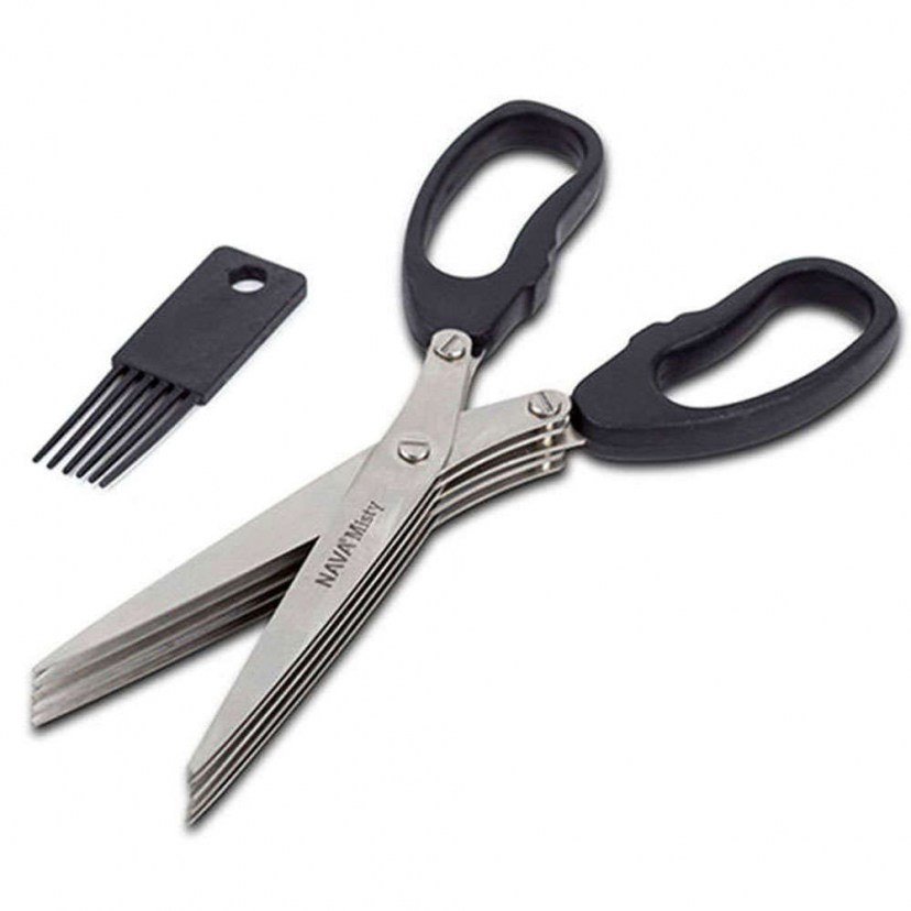 The Misty 10-167-048 Herb Scissors with Cleaning Comb is ideal for cutting vegetables, herbs, and spices. It is extremely durable thanks to its 5 blades made of 18/8 stainless steel, which are specially designed for cutting herbs. It has an ergonomic, non-slip handle for comfortable and safe handling. It comes with a cleaning comb.