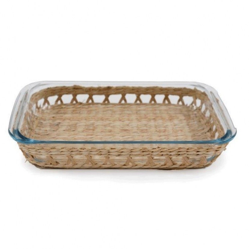 Add a sense of elegance and practicality to cooking and serving with the Rectangular Fire Dish With Straw Base 014.KG3445. Made from durable fire-resistant glass and accompanied by an intricately woven wicker base, this vessel is the ideal solution for cooking and serving in style. The straw base protects the table surface from heat and offers stability and safety when serving. It is an elegant and functional tool that will impress your guests and add style to your kitchen. Quality: