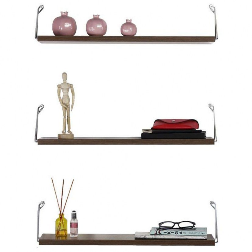 The Rafael Wall Shelf Set (3 pieces) is a stylish decorative option for homes and businesses of any design. It features an elegant design and combines metal with wood in a wonderful way. On each shelf, you can place various objects, with a weight not exceeding 10 kilograms. The set consists of three pieces. Quality: Metal & Chipboard Dimensions: 1 Shelf Set: 3 Shelves: Length: 60 cm, Width: 18 cm, Height: 12.5 cm