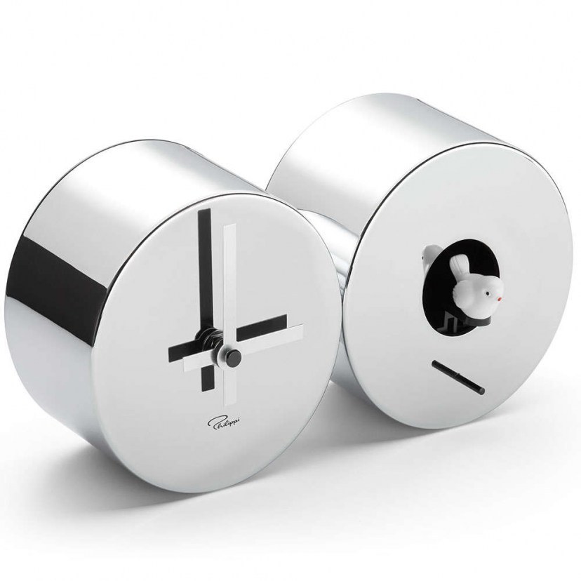 The Cuculo Cuckoo Table Clock - Alarm Clock 215007 combines the traditional charm of a classic cuckoo clock with modern elements of design and technology. The alarm clock's signature bird has been given its own special space, separated from the clock and hands, while the updated log cabin has given way to ultra-clean, chrome-plated steel housings that add an elegant touch. This watch works quietly, thanks to its innovative technology that eliminates the characteristic ticking sound. Instead of traditional weights, its operation is supported by batteries. It can either be mounted on the wall or stand gracefully on your table. It maintains the characteristic of chirping once an hour, thus offering a sense of traditional beauty. For nighttime hours, you can set the clock to turn off, ensuring peace and quiet.