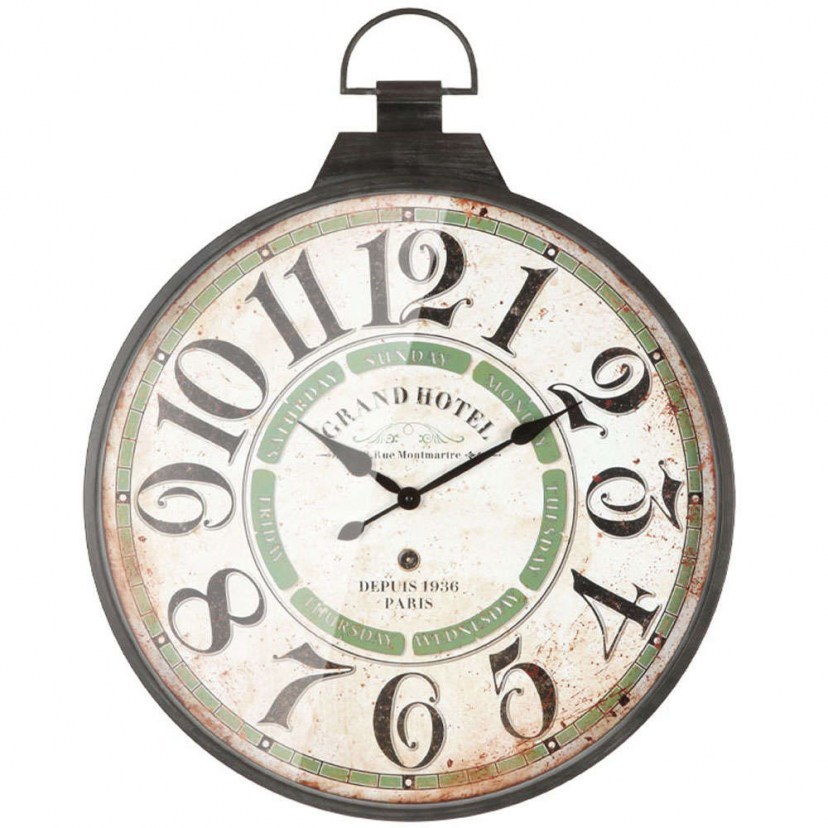 The 15-00-94265 Wall Clock is a round clock with a vintage character, incorporating large numbers and a hanging loop that exudes a retro vibe. It combines metal and MDF elements with glass and paper, offering a classic and elegant feel to your space.