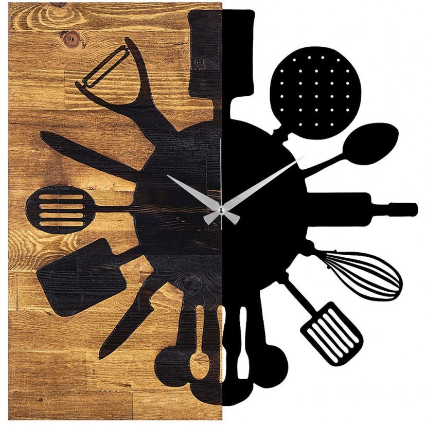 The Wall Clock 539TNL1132 is an ideal choice for your kitchen or dining areas, thanks to the special design with kitchen tools! It is an excellent coexistence of natural materials, as it is made of wood and metal, creating a masterpiece that exudes beauty and timelessness. The thickness of 3 cm gives the watch a sense of solidity and durability. The detailed craftsmanship and flawless finish make this clock a true work of art, adding a touch of elegance to any room. With the piece behind it, hanging the clock is easy on any wall. Transform your space by adding a distinctive element that reflects your unique style and personality. Quality: