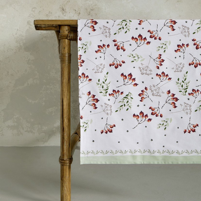 Get ready to welcome Christmas in the most charming and festive way with the beautiful Christmas Runner Mistletoe! This sophisticated runner brings the magic of the holidays to your table with an original printed pattern that adds a unique atmosphere to the space. The pattern features the famous red berries connected with branches of green leaves, all on a lovely light-colored background. Made from durable cotton with a stable weave, this wonderful runner is static-resistant and has great durability over time. The soft fabric falls lightly and lays beautifully on the table, while maintaining its color unchanged for a long time.