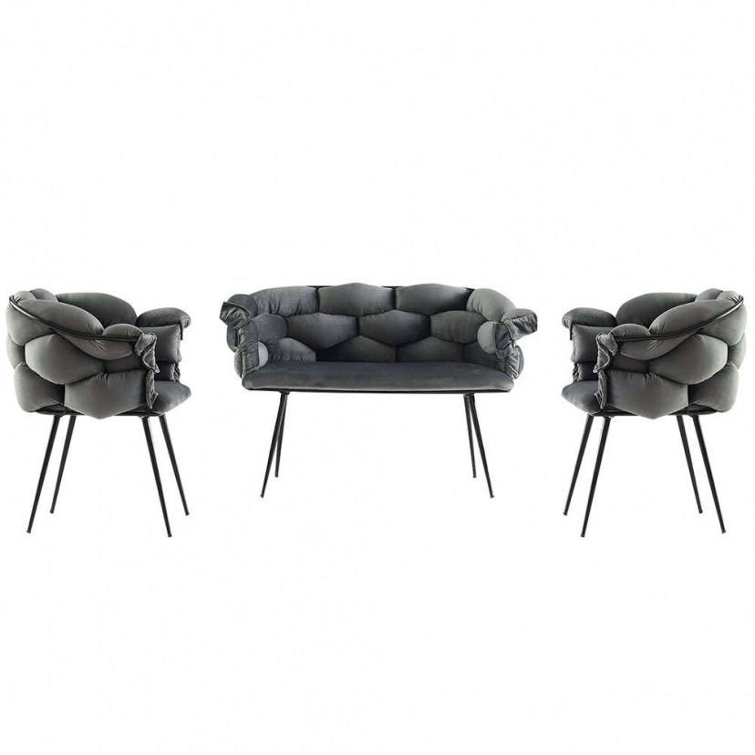 The Balon Living Room Set offers an ultimate experience of relaxation and style in your living room. Immerse yourself in the comfortable fabric of the sofa and armchairs and enjoy a sense of comfort that will envelop you in a world of relaxation. The soft and luxurious material will offer you the ultimate relaxation after a long day. With a sleek and modern design, the set = will upgrade the decoration of your space with timeless elegance. The product is delivered unordered. Quality: