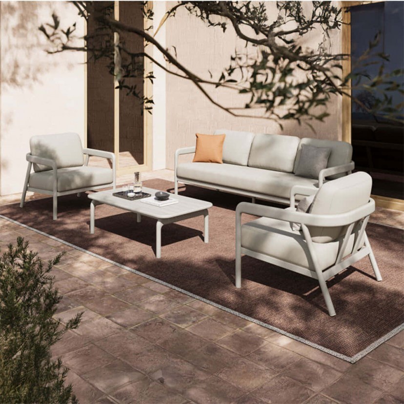 Δημιουργήστε έναν χώρο χαλάρωσης και κομψότητας στον κήπο, τη βεράντα ή την αυλή σας με το Σετ Σαλόνι Κήπου Marlena (4Τμχ) 394-000001. Το σετ περιλαμβάνει 2 πολυθρόνες, έναν τριθέσιο καναπέ και ένα τραπέζι σαλονιού, προσφέροντας την ιδανική σύνθεση για στιγμές άνεσης και κοινωνικής απόλαυσης. Ο σκελετός από αλουμίνιο εξασφαλίζει ανθεκτικότητα στον χρόνο και τη φθορά, ενώ η επένδυση των μαξιλαριών με ύφασμα πολυεστέρα 340gsm προσφέρει απαλή και άνετη αίσθηση. Τα μαξιλάρια έδρας και πλάτης εξασφαλίζουν επιπλέον άνεση, ενώ το τραπέζι από αλουμίνιο ολοκληρώνει το σετ, συνδυάζοντας στιβαρή κατασκευή και μοντέρνο design. Το προϊόν παραδίδεται αμοντάριστο, σε εργοστασιακή συσκευασία και με αναλυτικό οδηγό συναρμολόγησης.