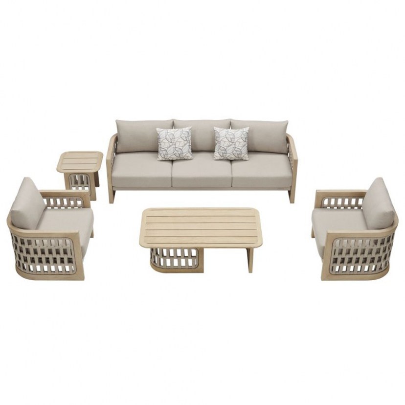Αναβαθμίστε τον εξωτερικό σας χώρο με το εντυπωσιακό Σετ Σαλόνι Κήπου Riva-3 01-00-2657 (5Τμχ) Με Μαξιλάρια, ένα ολοκληρωμένο lounge set πέντε τεμαχίων που συνδυάζει τη φυσική κομψότητα του μασίφ ξύλου teak με τον μοντέρνο σχεδιασμό του πλεκτού σχοινιού και του αλουμινίου. Αποτελείται από δύο άνετες πολυθρόνες, έναν ευρύχωρο τριθέσιο καναπέ και δύο τραπεζάκια – ένα κεντρικό και ένα βοηθητικό – προσφέροντάς σας εργονομία και στυλ. Τα outdoor μαξιλάρια με διακοσμητικές λεπτομέρειες εξασφαλίζουν μέγιστη άνεση, ενώ τα προστατευτικά καλύμματα διατηρούν το σετ σαν καινούριο όλο τον χρόνο. Ιδανική επιλογή για όσους επιζητούν διαχρονική αισθητική και χαλάρωση στον κήπο ή τη βεράντα τους. Συμπεριλαμβάνονται τα διακοσμητικά μαξιλάρια καθώς και καλύμματα προστασίας.