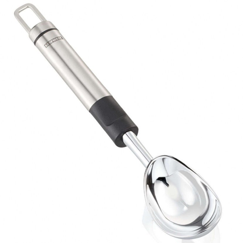 The Proline 3062 Ice Cream Scoop combines a slim and elegant design with durable materials, made of high quality stainless steel and plastic. Its ergonomic oval handle offers safe and comfortable use, while it has a practical hole that allows for easy hanging, making it ideal for everyday use in the kitchen.