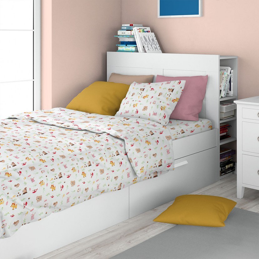 Children’s Sheet with Pillowcase Forest Animals 571 (Set 2pcs) White-Pink DimCol