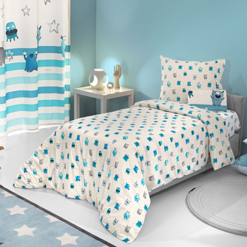 The Children's Bedding Set Monsters (3 pieces) is an excellent choice for those of you looking for quality sheets for your child's bed. It features cute children's designs that will make your child love it. It is made from 100% cotton threads, which are gentle on your child's skin and offer softness and durability. The set includes a top sheet, a fitted sheet, and a pillowcase.