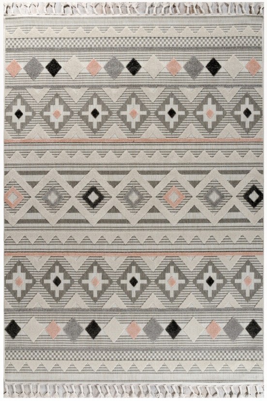 Somehow boho, somehow vintage, somewhat modern... however you see it, the Tenerife Rug 54098-255 is beautiful! It features a lovely textured design and is decorated with elegant tassels at the edges. This is a gorgeous rug, made from high-quality polypropylene with UV certification, making it durable over time and suitable even for outdoor use. It is static-resistant, hypoallergenic, and washable. Quality: 100% PP Frize UV Certificate Weight: 1300gr/m² Pile Height: 3 mm