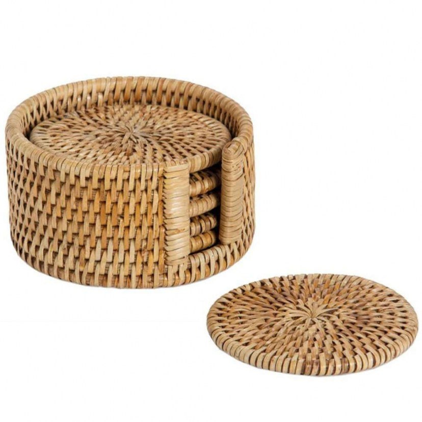 The Coaster Set On Base (7Pcs) AH-MS73183 is an amazing choice for you who want to add natural charm to the decoration of your space. It is made from 100% natural rattan fibers and has a stylish design. The set includes six coasters and their base. Clean with a damp cloth, without using abrasive products. Not dishwasher safe. Quality: