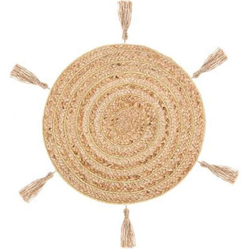 Impressive and original, the Lurex Straw Placemat 07.172484 will be a unique proposal for setting your table! Its round shape, the design resembling a cyclone in the center, and the elegant tassels at the end make it an exceptional and original idea for serving your guests! Quality: Straw. Dimensions: 1 Placemat: Diameter: 38 cm.