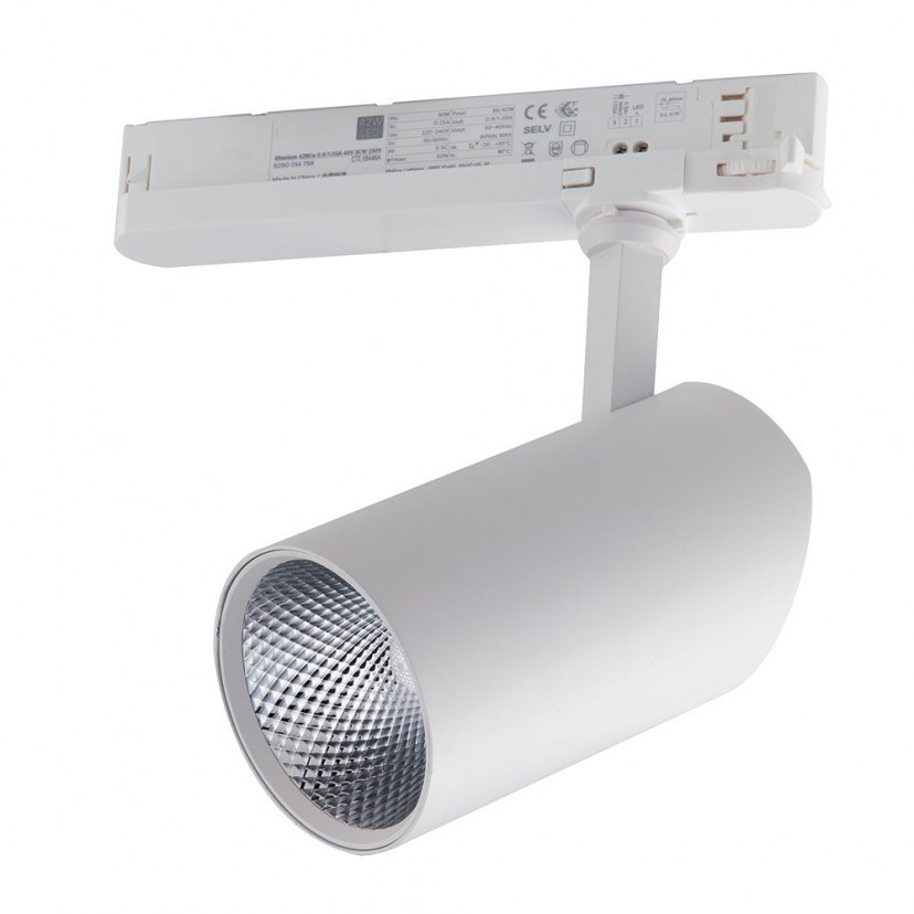The Spot Raga LED-Action features an invisible three-phase adapter and is available in two beautiful shades, so you can choose your favorite! It is a modern aluminum spotlight that rotates 330° and tilts 100°. It has integrated LED lighting with 20W neutral white light (4000K) and a brightness output of 1910 lumens. Beam angle: 38°. Quality: Aluminum Dimensions: 1 Luminaire: Length: 15 cm, Diameter: 6.2 cm, Height: 16.4-24 cm