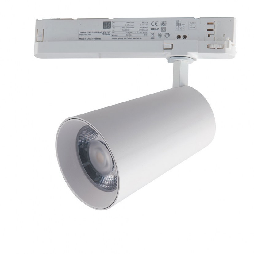 The Spot Raga LED-Kone is made of cast aluminum and has a three-phase adapter. It is an ergonomic spotlight that can rotate 330° and tilt 100°, allowing it to direct the light exactly where desired. It has a built-in 30W LED lighting with warm white light (3000K) and a luminous flux of 3860 lumens. Beam angle: 38°. Quality: Aluminum Dimensions: 1 Luminaire: Length: 16 cm, Width: 15 cm, Diameter: 10 cm, Height: 18.5-24.5 cm