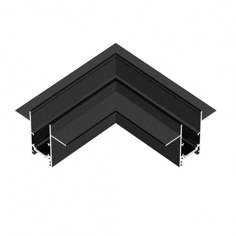 The Corner Horizontal Rail Connector 2-U015165, is used to create 90 degree corners on the rails and allow the flexible arrangement of the fixtures in a space, with the particularity of being recessed for a more discreet appearance.