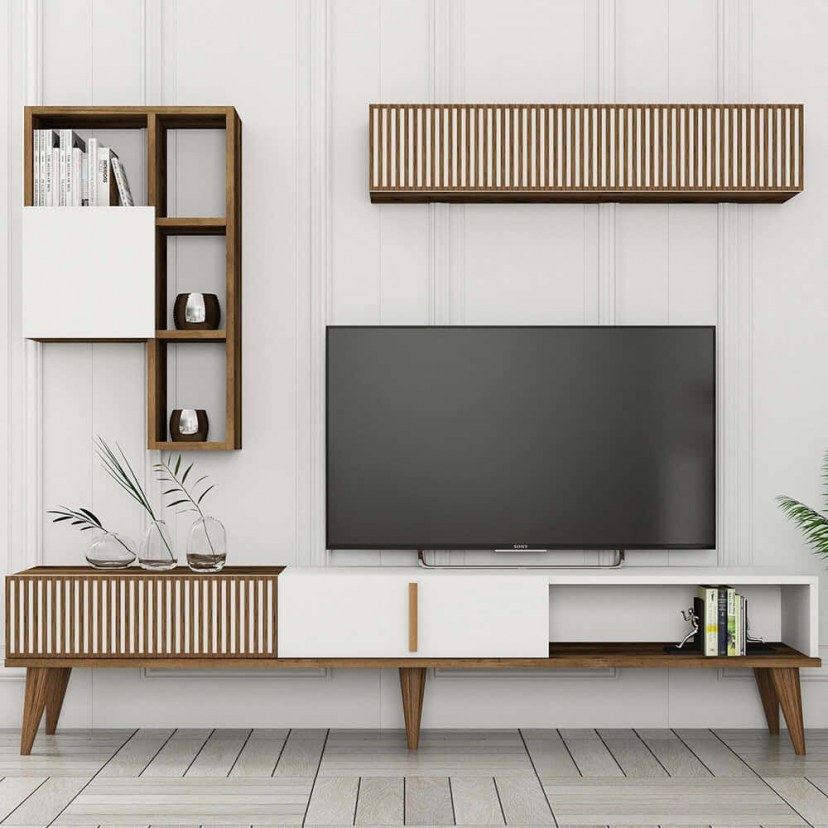 Η Σύνθεση Τηλεόρασης Milan συνδυάζει μοντέρνο στυλ και προσεγμένο σχεδιασμό για να αναδείξει τον χώρο σας με κομψότητα και λειτουργικότητα. Διαθέτει ένα όμορφο έπιπλο τηλεόρασης με δύο ευρύχωρα ντουλάπια και ραφάκι, προσφέροντας άφθονο χώρο για αποθήκευση και οργανωμένη τακτοποίηση. Η σύνθεση συνοδεύεται από μία επιτοίχια μονάδα με ράφια και δύο ντουλάπια, δημιουργώντας μία ολοκληρωμένη λύση αποθήκευσης για το σαλόνι σας. Κατασκευασμένη από μοριοσανίδα με επένδυση μελαμίνης, η υπέροχη σύνθεση εξασφαλίζει υψηλή αντοχή και μία εκλεπτυσμένη εμφάνιση που ταιριάζει σε κάθε σύγχρονο χώρο. Το έπιπλο τηλεόρασης υψώνεται καλαίσθητα στον χώρο με πλαστικά ποδαράκια για πιο κομψή εμφάνιση.