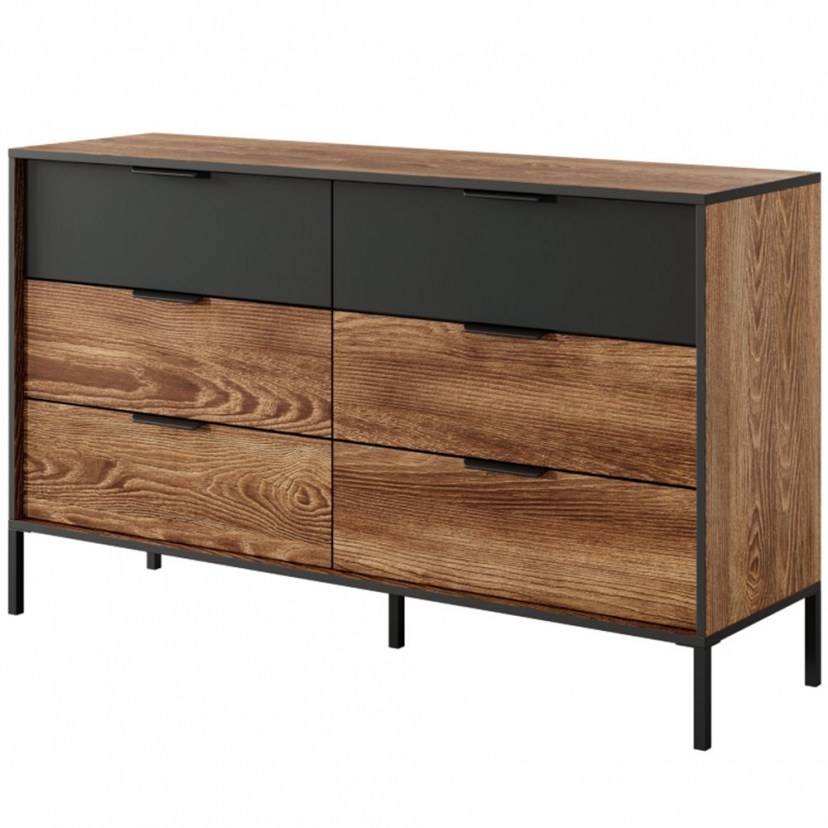 Η Συρταριέρα Milton συνδυάζει στιβαρή κατασκευή με σύγχρονο design, προσφέροντας μεγάλη αντοχή και λειτουργικότητα. Εξοπλισμένη με τηλεσκοπικούς βαρέως τύπου μηχανισμούς που ανοίγουν πλήρως, εξασφαλίζει εύκολη πρόσβαση και ομαλή λειτουργία σε κάθε συρτάρι. Κατασκευασμένη από ανάγλυφη μελαμίνη Ε05, η οποία αντέχει στην υγρασία και τις γρατσουνιές, είναι ιδανική για καθημερινή χρήση χωρίς να χάνει τη φρεσκάδα της. Οι μεταλλικές λαβές και τα μεταλλικά πόδια προσδίδουν μοντέρνα αισθητική και επιπλέον σταθερότητα, κάνοντας τη Milton την τέλεια επιλογή για κάθε χώρο που θέλει οργάνωση με στυλ και ανθεκτικότητα. Το προϊόν παραδίδεται αμοντάριστο.