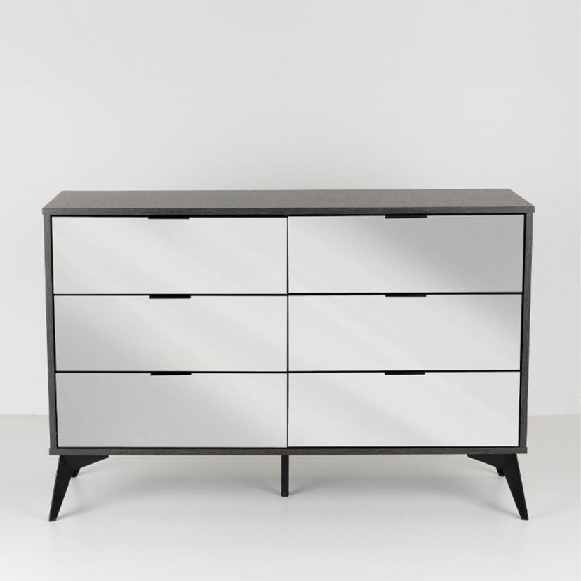 Η Συρταριέρα Specchio 09-2128 αποτελεί μια πολυτελή και εντυπωσιακή επιλογή για κάθε υπνοδωμάτιο ή dressing room. Η όψη καθρέπτη προσδίδει κομψότητα και μοντέρνα λάμψη, ενώ παράλληλα δημιουργεί οπτική αίσθηση μεγαλύτερου και φωτεινότερου χώρου. Τα έξι ευρύχωρα συρτάρια εξασφαλίζουν άνετη αποθήκευση για ρούχα, αξεσουάρ και προσωπικά αντικείμενα, διατηρώντας τον χώρο οργανωμένο και τακτοποιημένο. Η Specchio 09-2128 συνδυάζει λειτουργικότητα και εντυπωσιακό design, αποτελώντας ένα έπιπλο που προσθέτει στυλ, πολυτέλεια και πρακτικότητα στον χώρο. Το προϊόν παραδίδεται αμοντάριστο.