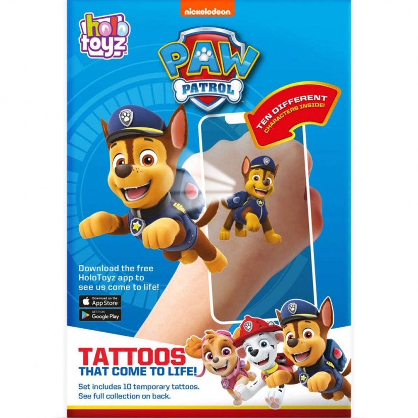 The Augmented Reality Tattoos bring Paw Patrol Moving Designs to Life. The TT60 tattoos can come to life in animated designs when scanned with the free HoloToyz app. This app allows the tattoos to be displayed in augmented reality and create impressive animated effects. Simply stick, scan, and watch the amazing tattoos come to life! You can increase the volume to hear the puppies jump and bark to the theme melody. This means that the app provides sound and you can hear the puppies trying to reproduce the sounds of barking and the Paw Patrol theme. The Holotoyz App is available for free on both iOS and Android devices. The instructions in the app are in English.