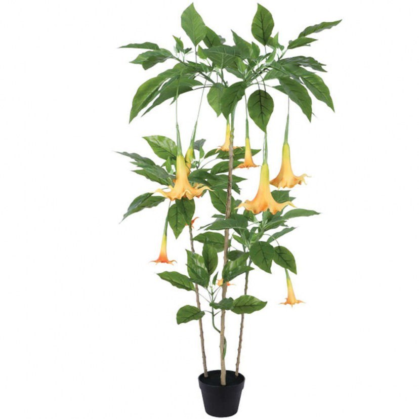 Get the Artificial Datura Tree 04-00-24196 from designdrops and be sure that it will take off the decoration of your space with its realistic design. It is a datura with real touch texture in a plastic case. It consists of 104 leaves and 10 flowers. Quality: