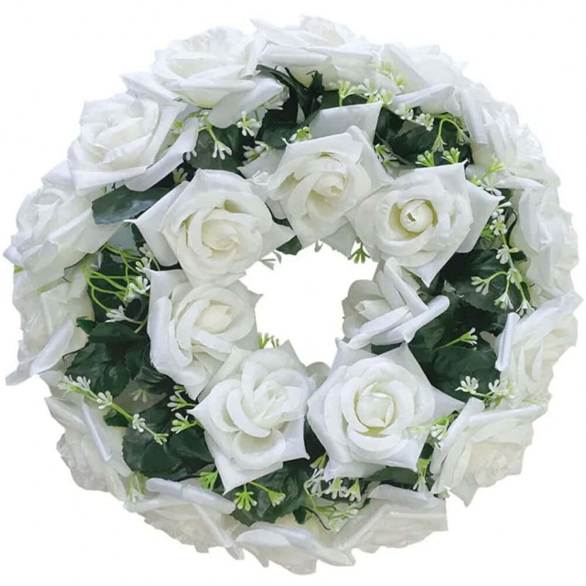 Artificial Flower Wreath Roses 13-24344-1 D40cm White Marhome