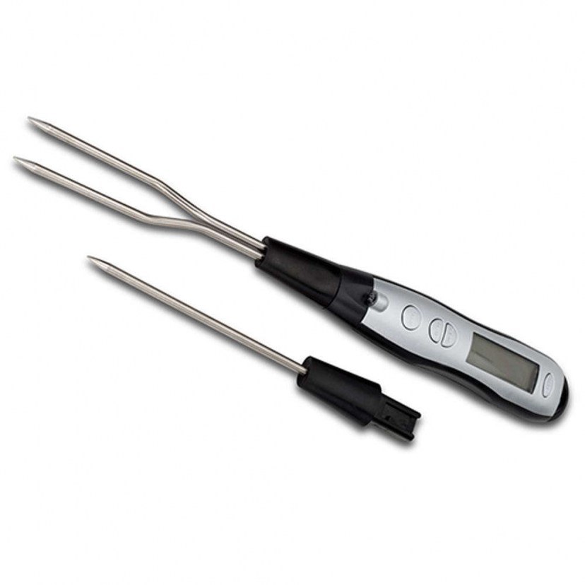 The Acer Digital Cooking & Meat Thermometer Set (3pcs) 10-274-041 will impress you with its capabilities and ergonomic design. It features two interchangeable temperature measurement sensors made of stainless steel (single probe and double fork). It provides temperature and cooking level indication, four different cooking level options, seven options for different types of meat, automatic shut-off after 1 minute, the ability to select temperature measurement unit in °C or °F, measurable temperature range from 0°C to +100°C (+32°F to +212°F). It has a built-in 60-minute timer with audible notification and a light in the handle. It is suitable for both solid and liquid foods, and can be used to check the exact temperature of baby food. Two 1.5V AAA batteries are required, which are not included. For your safety, always place the protective cover on the probe when not using the thermometer. During use, do not touch the probe-sensor with bare hands. Keep the thermometer away from children. Quality: Plastic & Stainless Steel Dimensions: 1 Thermometer: Length: 37.4 cm, Width: 4.2 cm, Height: 2.8 cm