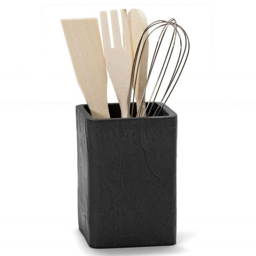 Κάντε δική σας τη Θήκη Για Κουτάλες Slate LBTAH-CC21054 και θα νιώσετε περήφανοι για αυτή την επιλογή σας. Η θήκη κατασκευάζεται από πολυρεζίνη και διαθέτει σχέδιο εφέ πέτρας. Περιλαμβάνει κουτάλα, σπάτουλα και πιρούνα, που κατασκευάζονται από ξύλο και έναν αναδευτήρα. Καθαρίστε τη με νωπό πανί, χωρίς τη χρήση λειαντικών προϊόντων.
