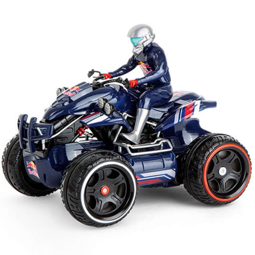 Red Bull is all about action and speed! This is exactly what the Red Bull Amphibious Quadbike 370160143 2.4Ghz Remote Control Car offers. It is specially designed for off-road routes and can run on both land and water. It is the ideal vehicle for an exciting action experience, capable of providing endless adventures. The four-wheel drive and the dry and wet surface function guarantee a better driving experience outdoors. Its water and snow protection allows it to perform exciting tricks in any weather. It can perform 360-degree rotations and reach speeds of up to 9 km/h. The routes last up to 20 minutes. It charges with a charger and takes about 80 minutes for a full charge. The LiFePo4 6.4 V - 700 mAh battery provides up to 20 minutes of operating time. Suitable for ages 14+. Dimensions: 1 Remote Control Car: Length: 28 cm, Width: 19.6 cm, Height: 20.4 cm.