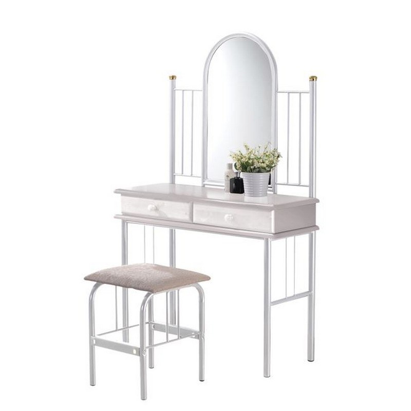 The Flora E8028.1 Toilet with Mirror and Stool has an elegant design and will impress you with its usefulness. It features a large mirror (43x74cm) and a helpful stool to make your preparations for outings more comfortable. It has two spacious drawers and a large surface to place various useful items, such as cosmetics and accessories. The frame of the toilet and stool is made of metal, the surface and drawers are made of wood, while the stool seat is upholstered with fabric. The product is delivered unassembled in factory packaging.