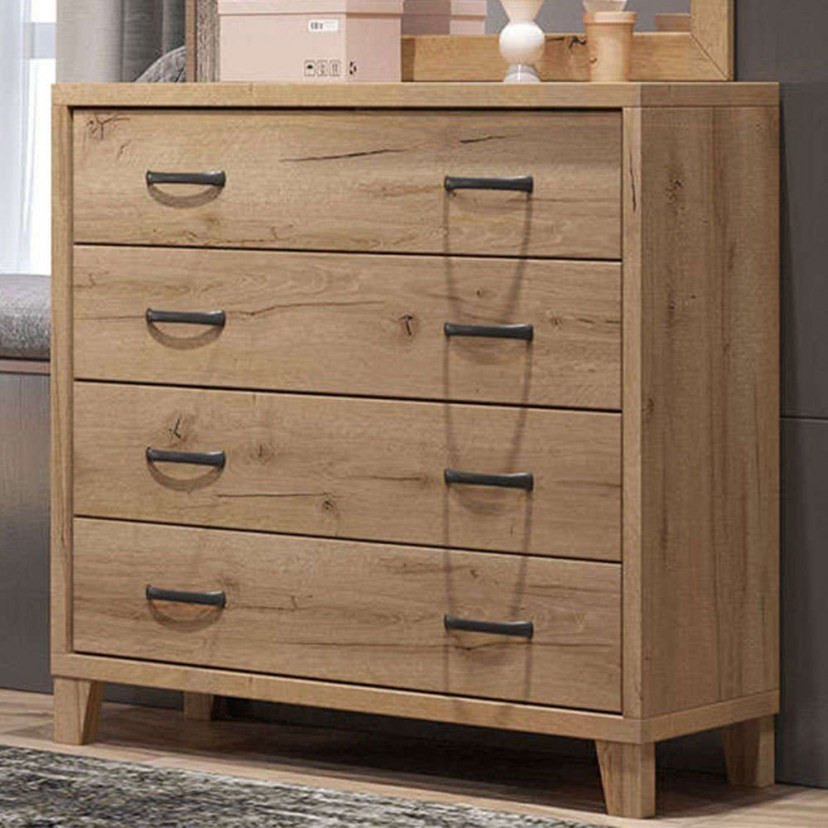 The Drawer No5 is made of melamine, which is a material that makes it resistant to time and use and an economical choice. It is a modern but timeless piece of furniture, which elegantly elevates the space with sturdy wooden legs. It has four spacious drawers, providing you with ample storage space for clothes, linens, etc. The product is delivered unassembled.