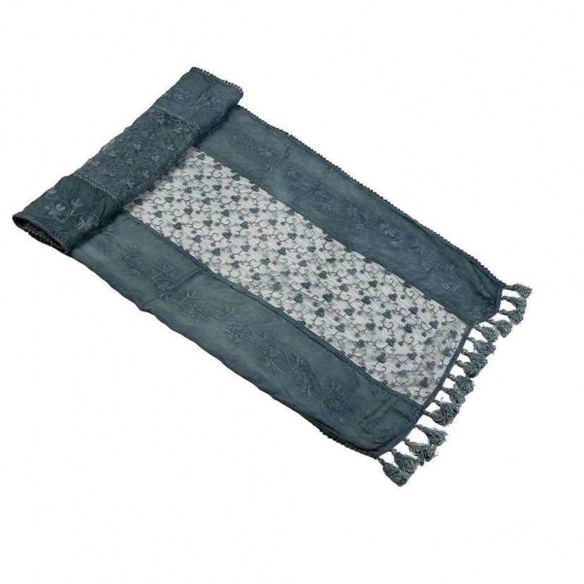 The ARF226 Traversa is monochrome and features intricate lace in the center and edges. It is decorated with cute pom poms that provide movement and unparalleled style. It is made of high-quality cotton threads, making it durable and soft. It can be washed at 30°C. Ironing, dry cleaning, and tumble drying are prohibited.