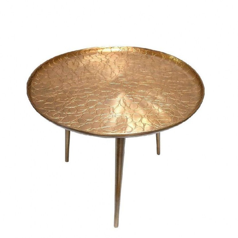 Elevate the aesthetics of your space with a unique handmade piece of furniture! The DUG209 Coffee Table is handcrafted from solid aluminum. It features thin legs and an impressive surface with embossed design and beautiful shade. It is ideal for the living room of your home or your professional space, but also for any other space where you want to ensure shine and luxury! Quality: Aluminum. Dimensions: 1 Table: Diameter: 57 cm, Height: 48 cm.