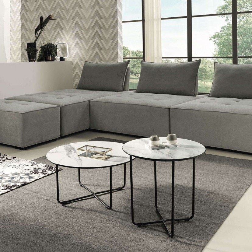The Jon Coffee Table is round and characterized by elegant and modern design. Its surface is made of laminated glass, giving the feeling of marble, while its frame is metallic. It can be placed in the living room, office, or even the bedroom. Combine it with the corresponding table in a smaller size. It is delivered unassembled and with detailed assembly instructions. Quality: