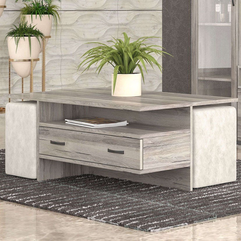 Are you looking for a living room table that incorporates functionality, ergonomics, and modern design? Coffee Table No3 is the ultimate solution for you, as it perfectly combines functionality with aesthetics. It features two spacious drawers that allow you to store items and keep your space organized. One of the most impressive features of this table is the two stools that accompany it. These stools fit underneath the surface of the table when not in use, creating a clean and tidy space. When you need more seating, the stools simply slide out from under the table, adding additional seats. The product is delivered unassembled.