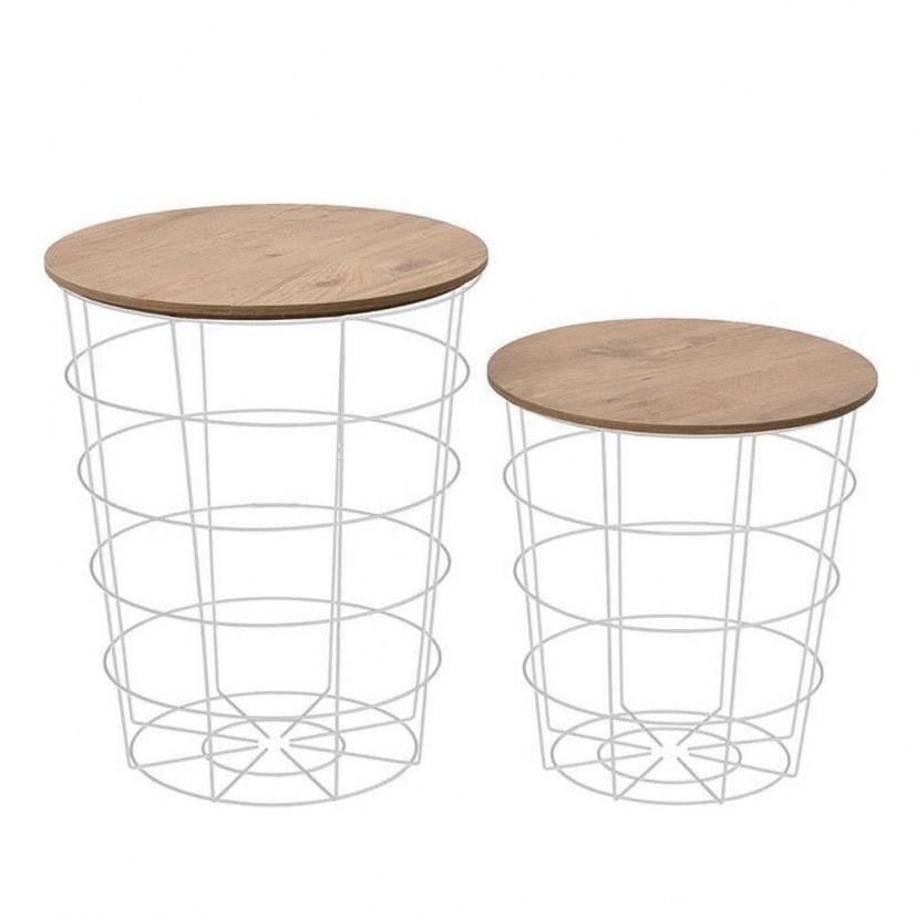 ΤαΤραπεζάκια Ζιγκόν (Σετ 2Τμχ) 6-50-200-0005 μπορούν να διακοσμήσουν, με καλαίσθητο τρόπο, τόσο το σπίτι όσο και την επιχείρησή σας. Ο διάτρητος σκελετός τους κατασκευάζεται από μέταλλο, ενώ οι επιφάνειές τους είναι ξύλινες. Το σετ αποτελείται από δύο τεμάχια.