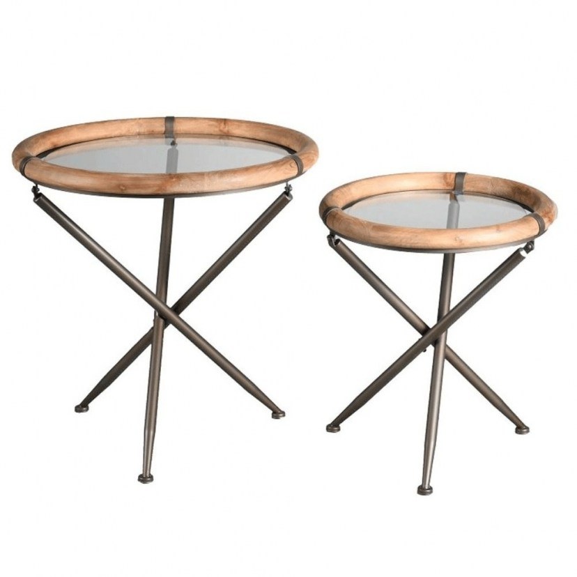 The JAM109 Side Table Set includes two side tables of different sizes, designed with a vintage aesthetic that create a welcoming and warm atmosphere in your living room. The combined use of tempered safety glass and fir wood lends an elegant and functional character to the coffee tables. The vintage aesthetic is combined with the durability of the metal frame, making them ideal for everyday use. The product is delivered unordered. Quality: