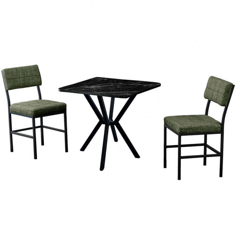 Dining Dubai (Set 3Pcs) 225ALN1584 70x70x74cm Marble Effect Black-Green